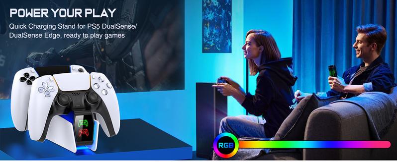 - 【Smart Chip & Safe PS5 Controller Charger】This PlayStation 5 controller charger is installed with a built-in protection chip to prevent over-current, over-voltage, or short-circuit for dual PS5 controllers and your device. Don't worry about your PlayStation 5/ PS5 controller even if it is charged overnight.