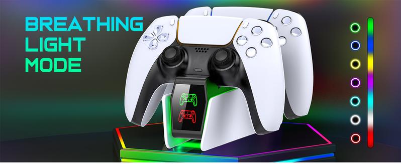 BEBONCOOL PS5 controller charging station combines multiple advantages of fast charging, cool light design, charging indicator, smart chip safety protection, and storage function. Charging compatible with PS5 elite controller. It is one of the best gifts for PlayStation 5 game lovers.