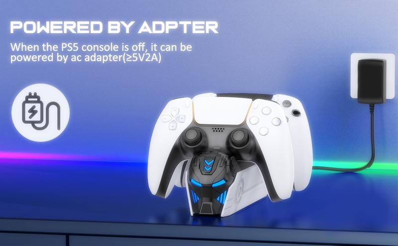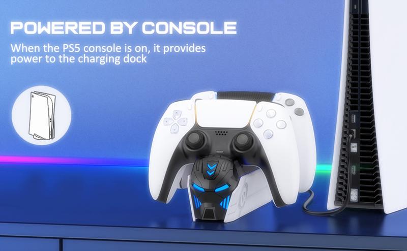 【Cool Design】With its Robot helmet-inspired aesthetic, immerse yourself in the world of superheroes as you recharge your controllers and prepare for epic gaming battles ahead. Whether you're a casual gamer or a hardcore enthusiast, this PS5 Controller Charger Station is an absolute must-have for every PlayStation 5 owner. Don't miss out on the opportunity to add a dash of superhero flair to your gaming setup.