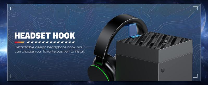 ✅【Excellent Space Organization 】— This charging stand for Xbox Series X has 6 game dics storages and 2 expansion card slots to store your accessories, 1 headset holder to keep your headset organized when not in use. This charger station keeps your gaming space neat and order. (Note: the USB ports at the back of charge stand support data transmission and charging.)