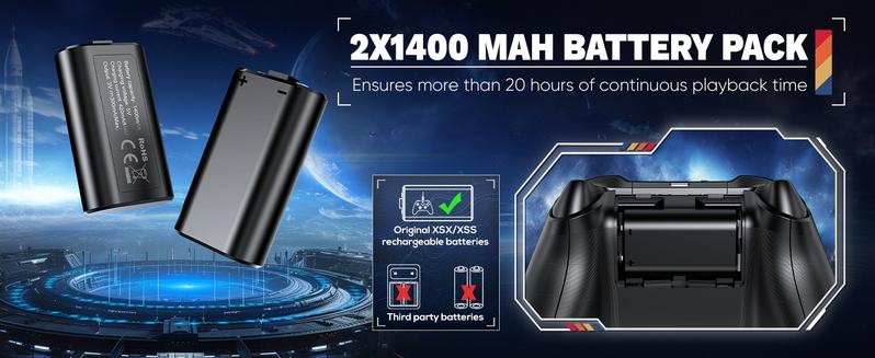 ✅【Dual Wireless Charger Dock】 — The power comes from the console, so you need to connect the the charge stand with console through a charging cable, install the battery for Xbox Series X Controller, align the type-C interface on the controller with the type-C plug in the charge stand. When charging, the charging indicator is red, when fully charged, the indicator is green. (Note: ONLY charge for Xbox Series X original battery and the battery we provide, not charge for third party battery.)